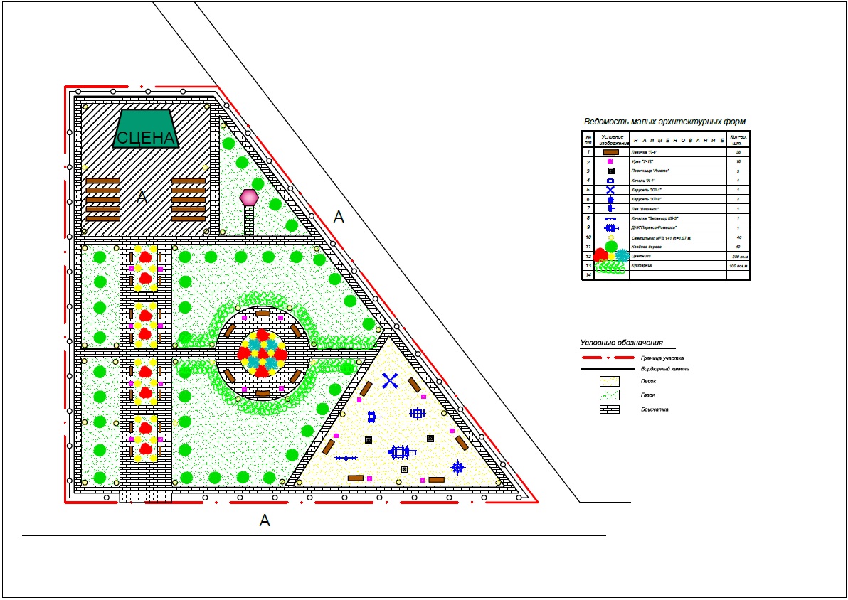 - озеленение территории (кусты, клумбы, газоны);