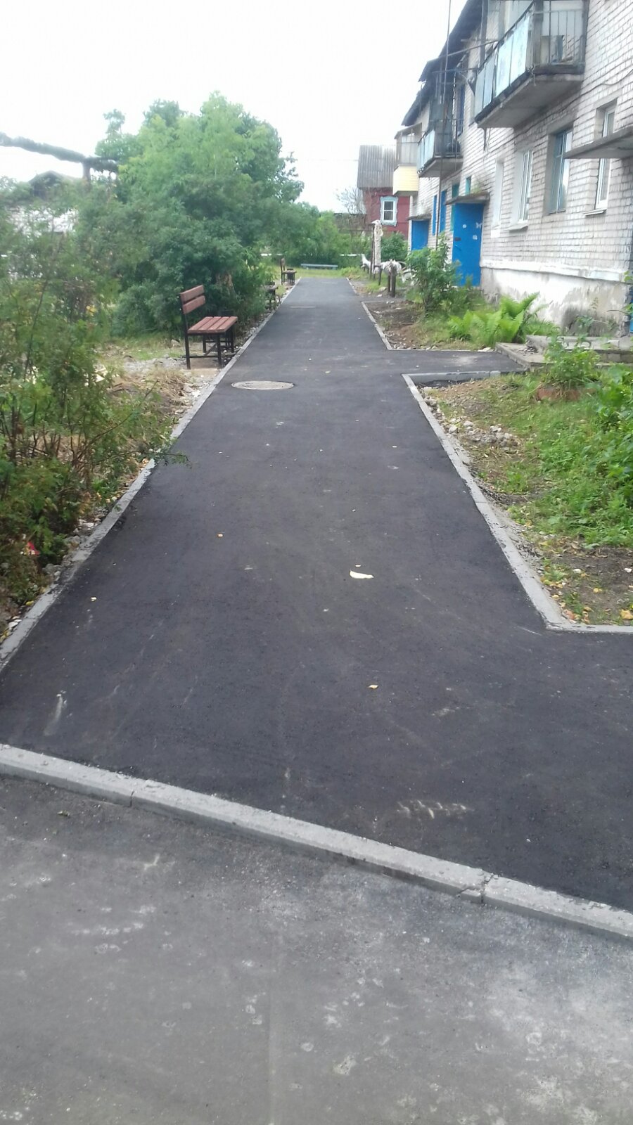 Ремонт дворовых территорий с обустройством подходов к подъездам, асфальтирование тротуаров, установка урн.