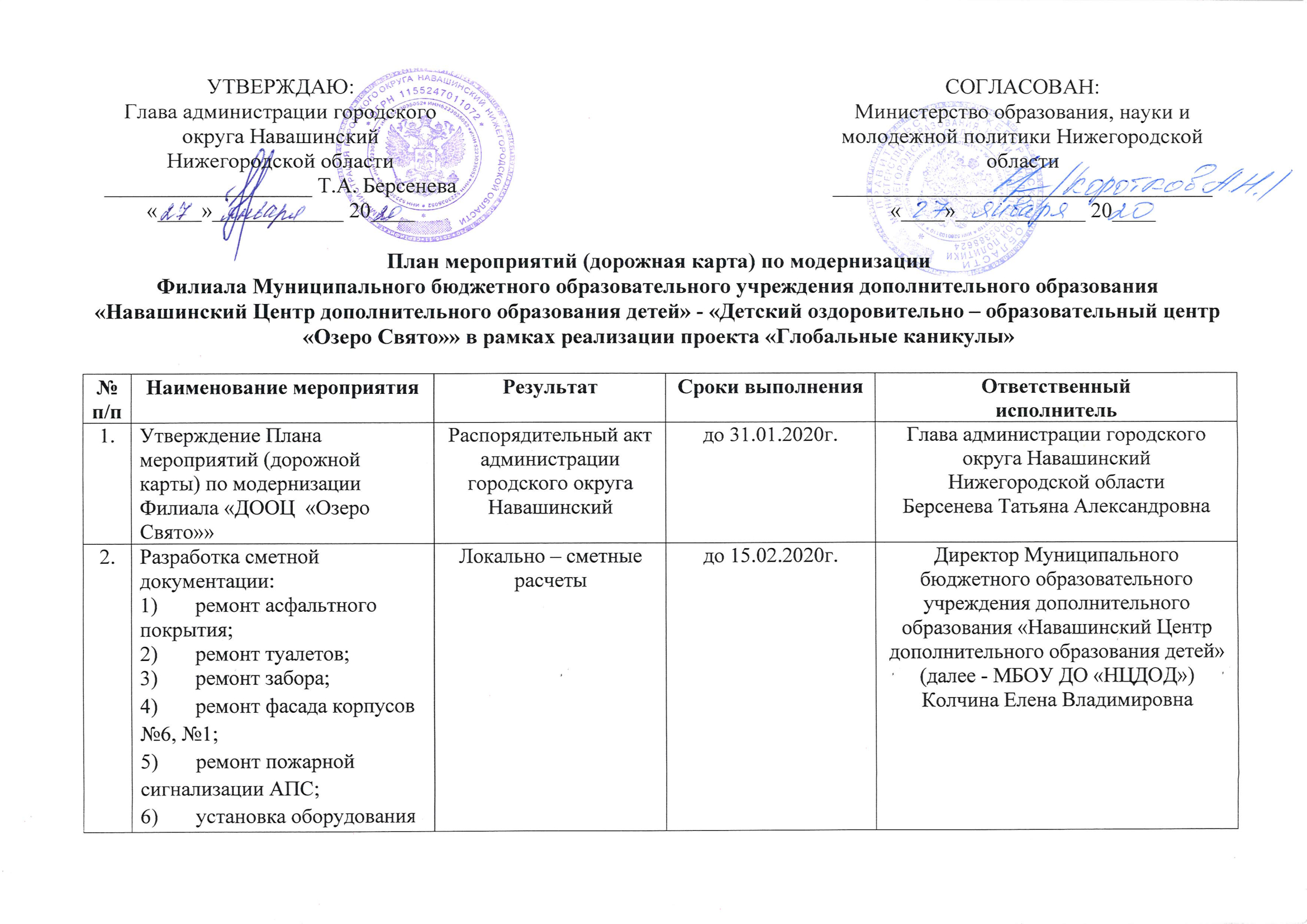 Модернизация Филиала «Навашинский Центр дополнительного образования детей» - «Детский оздоровительно-образовательный центр «Озеро Свято»» для реализации спектра услуг по организации отдыха и оздоровления детей и подростков, а так же развивающих услуг в сфере дополнительного образования детей в городском округе Навашинский.