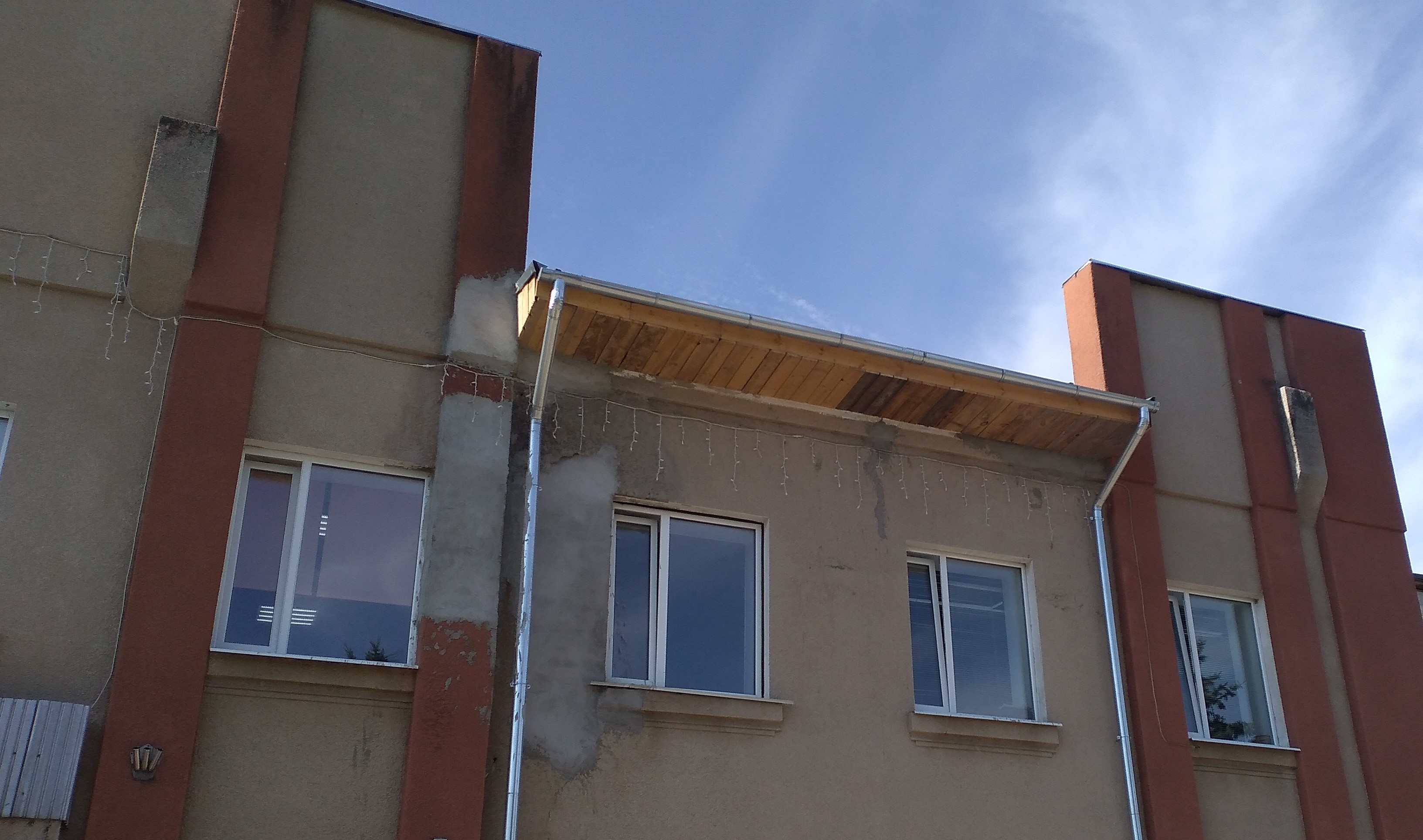 Здание 1986 года постройки. С момента строительства не проводилось не одного капитального ремонта здания, ремонтные работы проводятся лишь в помещениях, исходя из финансовой возможности. Кровля - один из основных элементов здания, который играет очень важную роль в безопасности тех, кто находится в здании. В настоящее время текущим ремонтом кровли не обойтись. Металлическое покрытие имеет коррозионные места разрушения, протечки. Сырость на потолках и стенах влечет ухудшение температурно-влажностного режима в помещениях. Отсутствие водосточной системы ведет к разрушению отделочных покрытий, материалов стен, намокание фасада. Ухудшение эксплуатационных качеств кровельного покрытия ведет к промерзанию перекрытий.